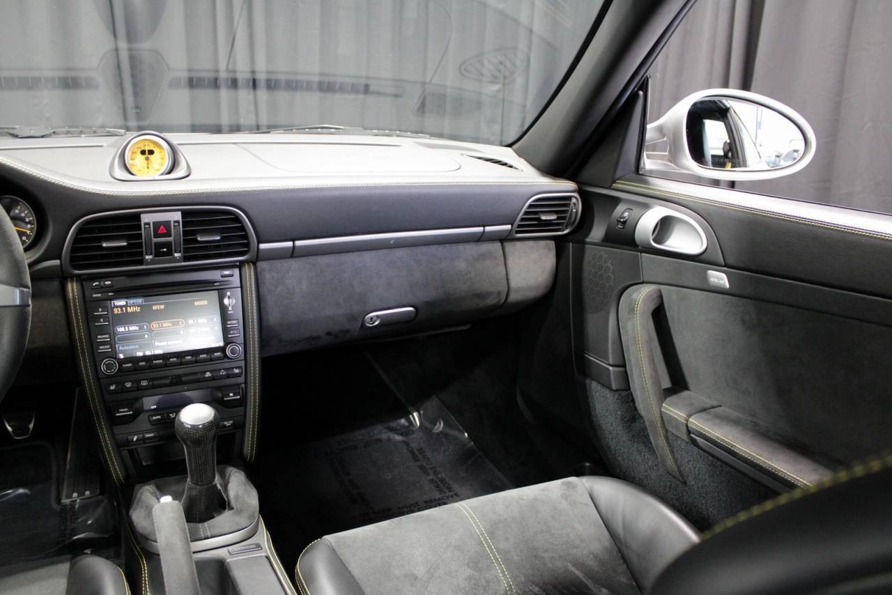 2010 Porsche 911 GT3 in Arctic Silver with Black leather interior with Speed Yellow stitching.