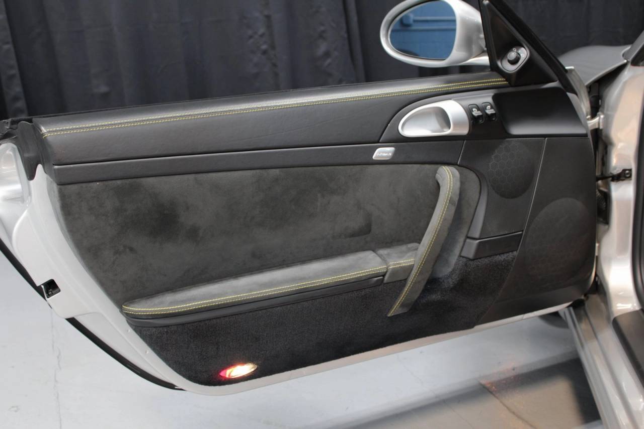 This award-winning Porsche 911 GT3 is a truly special car in more ways than one. It is a low-mileage example of early 2010s Porsche racecar performance, and it pairs its amazing speed and handling with a dynamic manual transmission, and gorgeous styling. Shiny Arctic Silver is paired with Silver wheels, Speed Yellow Porsche Ceramic Composite Brakes (PCCB), and a large rear wing for an eye-catching exterior. Inside, Black leather is paired with Speed Yellow deviated stitching everywhere, along with the classic Sport Chrono Timer Display, and seat belts, which are also in Speed Yellow. An Aluminum footrest, and fire extinguisher give this car that extra bit of racecar feel, and round out a truly special Porsche 911 GT3.