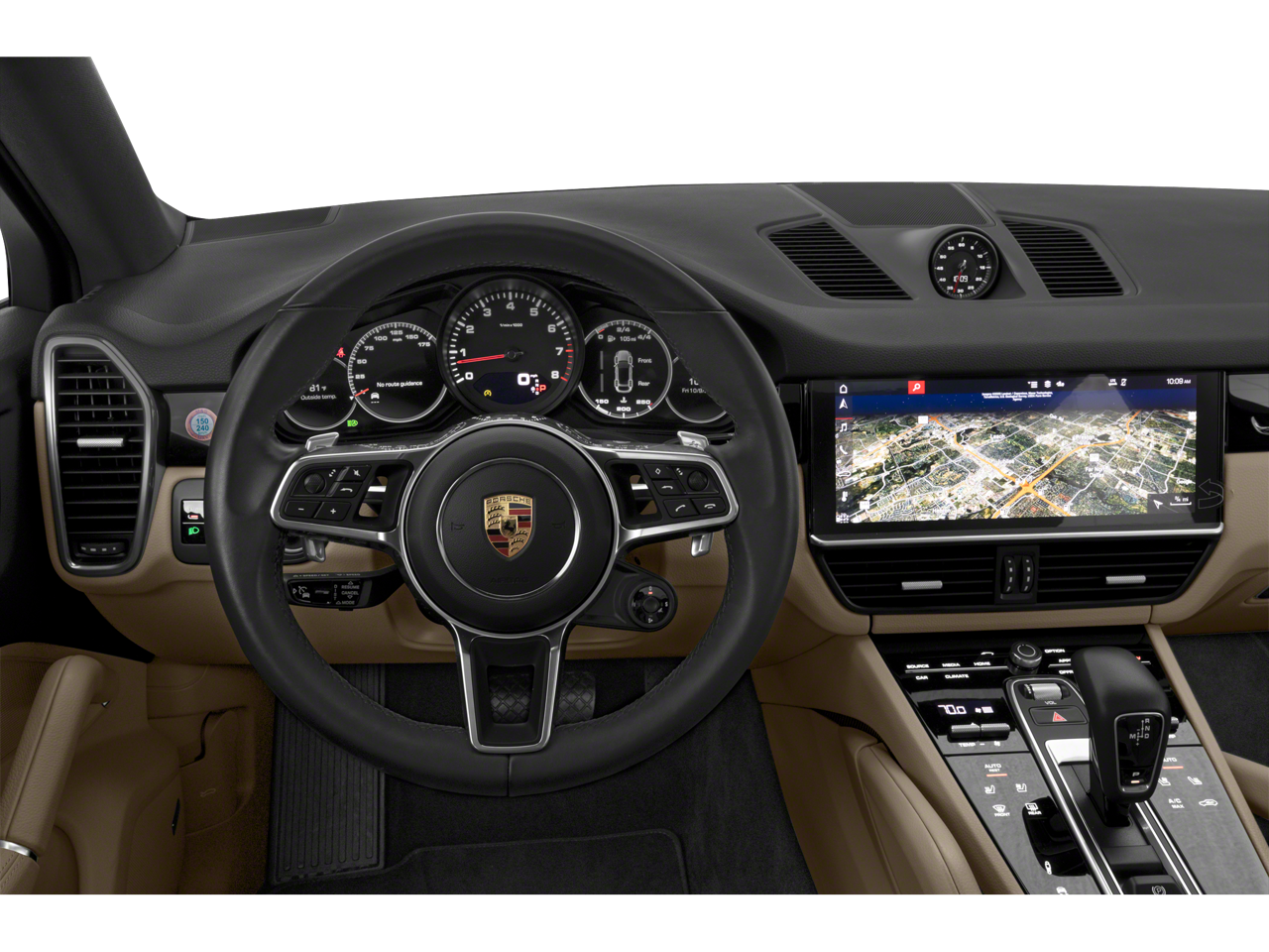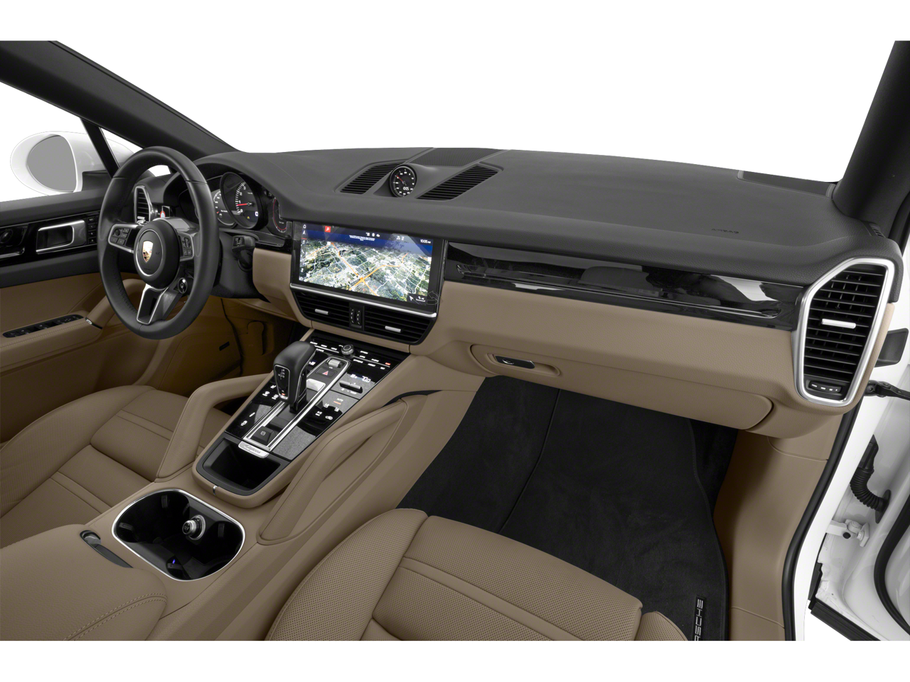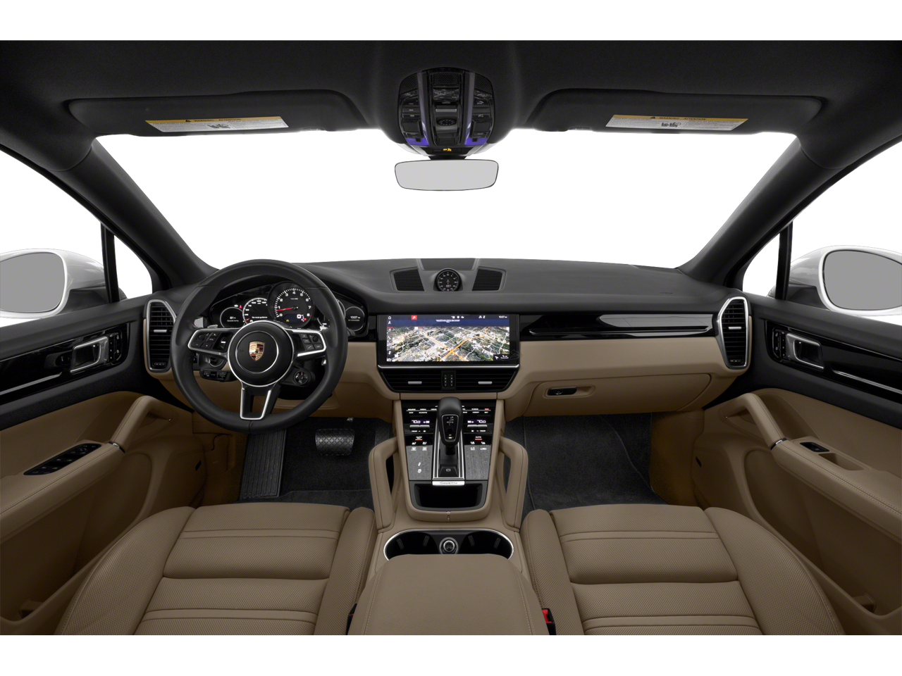 10 Speakers, 4-Wheel Disc Brakes, 8-Way Power Sport Seats, ABS brakes, Adaptive suspension, Air Conditioning, Alloy wheels, AM/FM radio: SiriusXM, Apple CarPlay, Automatic temperature control, Axle Ratio: TBD, Brake assist, Bumpers: body-color, Delay-off headlights, Driver door bin, Driver vanity mirror, Dual front impact airbags, Dual front side impact airbags, Electronic Stability Control, Exterior Parking Camera Rear, Four wheel independent suspension, Front anti-roll bar, Front Bucket Seats, Front Center Armrest, Front dual zone A/C, Front reading lights, Fully automatic headlights, Garage door transmitter: HomeLink, Heated door mirrors, Illuminated entry, Knee airbag, Leather Seat Trim, Leather Shift Knob, Low tire pressure warning, Navigation System, Occupant sensing airbag, Outside temperature display, Overhead airbag, Overhead console, Panic alarm, Passenger door bin, Passenger vanity mirror, Porsche Communication Management, Power door mirrors, Power driver seat, Power Liftgate, Power passenger seat, Power steering, Power windows, Radio data system, Rain sensing wipers, Rear anti-roll bar, Rear fog lights, Rear reading lights, Rear seat center armrest, Rear side impact airbag, Rear window defroster, Remote keyless entry, Security system, Speed control, Split folding rear seat, Spoiler, Steering wheel mounted audio controls, Tachometer, Telescoping steering wheel, Tilt steering wheel, Traction control, Trip computer, Turn signal indicator mirrors, Variably intermittent wipers, Voltmeter, Wheels: 20 Cayenne Design.