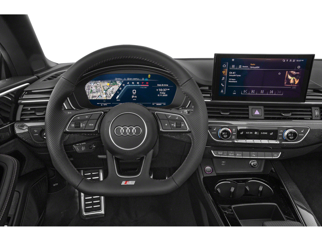 10 Speakers, 4-Wheel Disc Brakes, ABS brakes, Air Conditioning, Alarm System w/Motion Sensor, Alloy wheels, AM/FM radio, Animation for Headlights & Taillights, Audi Active Lane Assist, Audi Adaptive Cruise Control w/Traffic Jam Assist, Audi Advanced Key, Audi Connect PRIME & PLUS, Audi Guard All-Weather Mats, Audi Guard Wheel Lock Kit, Audi Laser Light & Headlight Washers, Audi Phone Box, Audi Phone Box Delete, Audi Side Assist w/Pre Sense Rear, Audi Virtual Cockpit Plus, Auto High-beam Headlights, Auto-Dimming Exterior Mirrors, Auto-dimming Rear-View mirror, Automatic temperature control, Bang & Olufsen Sound System w/3D Sound, Brake assist, Bumpers: body-color, Compass, Convenience Package, Convertible roof lining, Convertible roof wind blocker, Delay-off headlights, Driver door bin, Driver Seat Memory, Driver vanity mirror, Dual front impact airbags, Dual front side impact airbags, Electronic Stability Control, Emergency communication system: Audi connect CARE, Exterior Parking Camera Rear, Fine Nappa Leather Seating Surfaces, Four wheel independent suspension, Front anti-roll bar, Front Bucket Seats, Front Center Armrest, Front dual zone A/C, Front fog lights, Front reading lights, Garage door transmitter: HomeLink, Glass rear window, Hands-On Detection Steering Wheel, Head-Up Display, Heated door mirrors, Heated Front S Sport Seats, Heated front seats, Heated Steering Wheel, Illuminated entry, Integrated roll-over protection, Interior Lighting Plus Package, Knee airbag, Leather Seating Surfaces, Leather Shift Knob, Leather steering wheel, Leatherette Covered Center Console & Door Armrests, Low tire pressure warning, MMI Navigation Plus, Navigation Package, Neck-Level Heating System, Occupant sensing airbag, Outside temperature display, Panic alarm, Park Assist, Parking System Plus, Passenger door bin, Passenger vanity mirror, Power convertible roof, Power door mirrors, Power driver seat, Power Folding Exterior Mirrors, Power passenger seat, Power steering, Power windows, Prestige Package, Radio data system, Radio: Audi Sound System, Rain sensing wipers, Rear air conditioning, Rear anti-roll bar, Rear Load Sill/Door Cup/Door Edge Paint Protection, Rear reading lights, Rear window defroster, Red Brake Calipers, Remote keyless entry, S Sport Package, SiriusXM All Access Service, Speed control, Speed-sensing steering, Speed-Sensitive Wipers, Split folding rear seat, Sport Adaptive Damping Suspension, Sport Exhaust Resonator, Sport Rear Differential, Steering wheel mounted audio controls, Tachometer, Telescoping steering wheel, Tilt steering wheel, Top View Camera System, Traction control, Traffic Sign Recognition, Trip computer, Turn signal indicator mirrors, Variably intermittent wipers, Ventilated Front Sport Seats, Warm Weather Package, Wheels: 19 5-Double-Arm Design Bi-Color Finish, Wheels: 20 5-V-Spoke-Star Design.