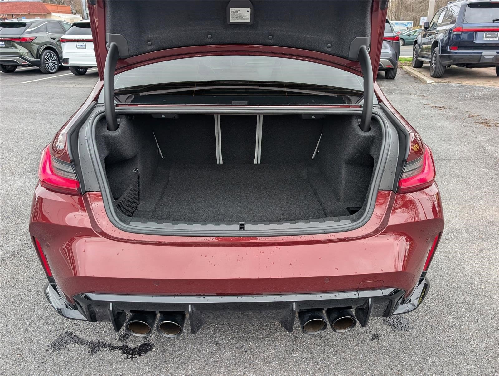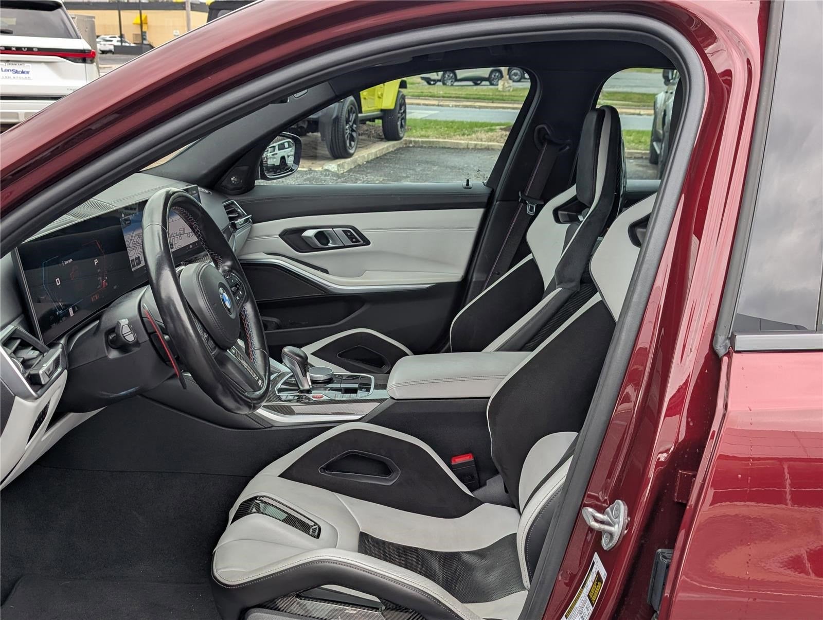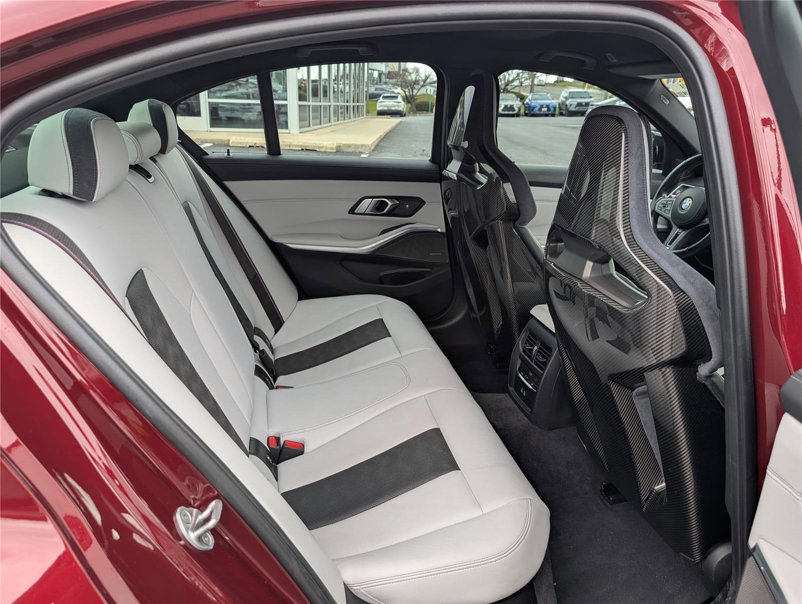 This 2023 BMW M3 Competition Sedan is a high performance luxury sports sedan offering aggressive styling, track ready capability, and everyday comfort.Finished in Adventurin Red Metallic with Silverstone and Black Full Merino leather interior, this M3 Competition is powered by a 3.0L TwinPower Turbo inline 6-cylinder engine paired with an 8-speed M Steptronic automatic transmission, delivering thrilling performance and precision handling.Well equipped with Parking Assistance Package, Executive Package, Adaptive M Suspension, M Carbon Ceramic Brakes, Harman Kardon Surround Sound System, Head-Up Display, Heated Front Seats, Navigation, Apple CarPlay and Android Auto, and Shadowline exterior trim.This M3 Competition combines luxury, cutting edge technology, and track inspired performance in one of BMWs most iconic sport sedans.All pre-owned vehicle pricing excludes taxes, tags, title, $799.00 Dealer Processing Fee (not required by law).