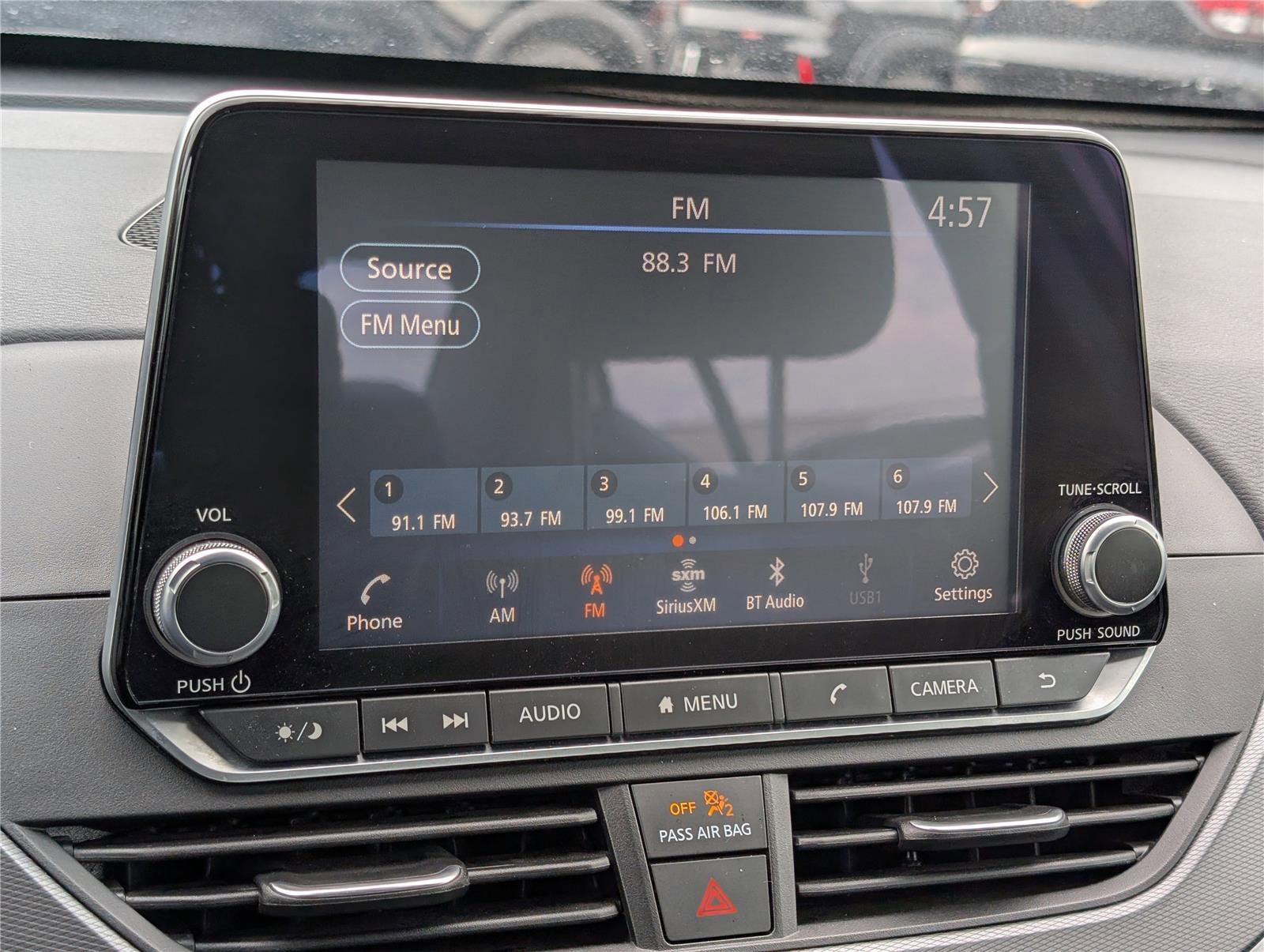 - Radio: AM/FM Audio System -inc: RDS, MP3 and aux-in, 6 speakers, NissanConnect featuring Apple CarPlay, Android Auto, 8" color display w/multi-touch control, 1 front illuminated USB port (type-C) for compatible devices, SiriusXM radio, Bluetooth® hands-free phone system, streaming audio via Bluetooth®, hands-free text messaging assistant, Siri Eyes Free and Google Assistant voice recognition