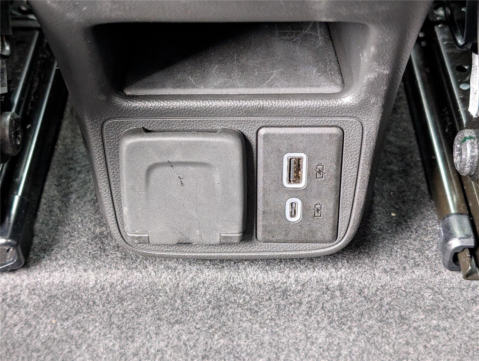 - One type-A and one type-C charging only USB ports1, located on rear of center console