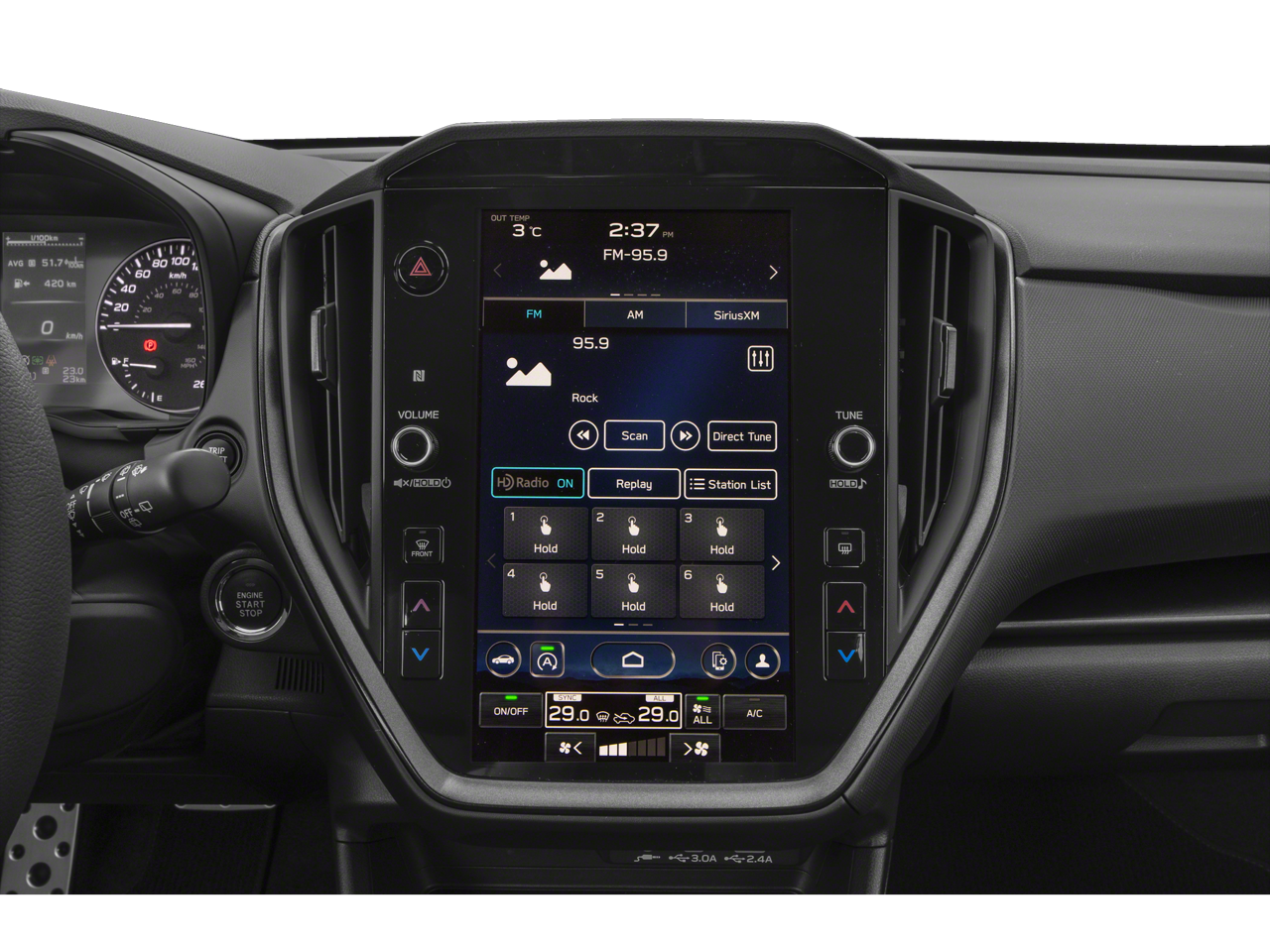 - Radio: Subaru 11.6" Multimedia Plus System -inc: valet mode, AM/FM stereo, HD Radio, multi-touch gesture high resolution display screen, voice activated controls, Bluetooth® audio streaming and hands-free phone connectivity, Bluetooth® hands-free SMS text messaging connectivity, iPod control capability, SiriusXM w/360L (4 months free trial/subscription required after), SiriusXM Travel Link (4 months free trial/subscription required after), smartphone integration: Android Auto w/full screen view and wireless connection, Apple CarPlay w/full screen view and wireless connection, USB and Over The Air (OTA) audio system update, audio system and Buletooth steering wheel control switches, 6 speakers, illuminated 3.5mm auxiliary input jack, illuminated USB A and C input charge ports, roof mounted black antenna and satellite connected services